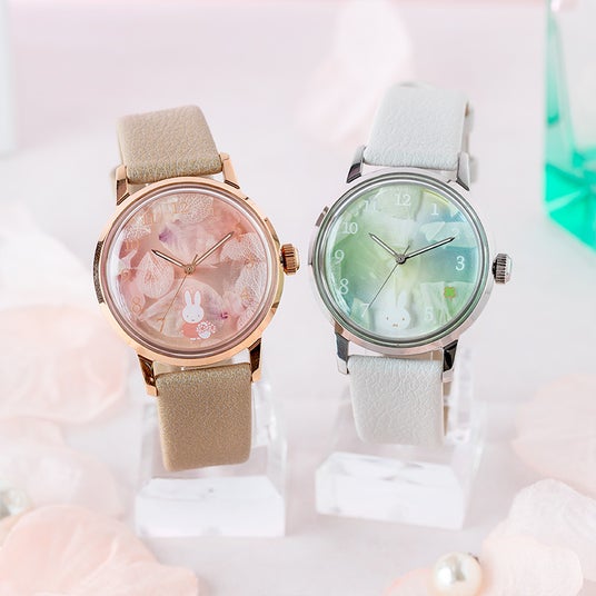 「強くて可憐な花や植物からインスピレーションを得たデザイン」をコンセプトにした、大人のためのウォッチブランド「LOV-IN BOUQUET」から、本物の花びらを使用した文字盤が特徴のFlower Miffy限定デザインの「Flower Miffy LOV-IN BOUQUET プリザーブドフラワーウォッチ」2種が数量限定で販売中です。