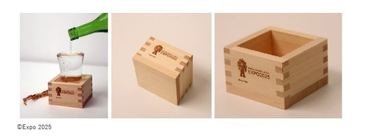 ひのきは全体的に淡く、薄橙色に近い色合 いは落ち着いた清潔感があること が特徴で、ひとつひとつ色合いや 木目が異なるため、すべての枡が 世界に一つだけの模様となっています。 今回は愛くるしい大阪・関西万博公式キャラクター「ミャクミャク」の デザインをを施しました。この模様とミャクミャクが合わさった枡は世界に一つだけの大阪・関西万博 の記念品としてぴったりの商品です。