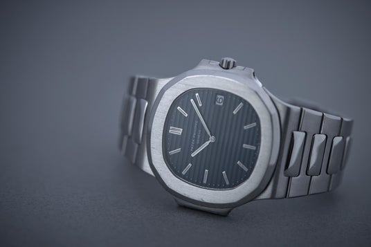 1976年から約6年間製造された初代ノーチラス。発売当時としては大型となる40mmのケースは、後継のRef.3800がサイズダウンし37.5mmだったことからジャンボの愛称で呼ばれている。裏蓋とケースが一体型の2ピース構造で、両端の耳と噛み合わせてビス留めする仕組みを採っており、7.5mmもの薄さながら防水性120mを実現。現在では一部を除いて3ピース構造を主とするため希少な機構を採る一本。