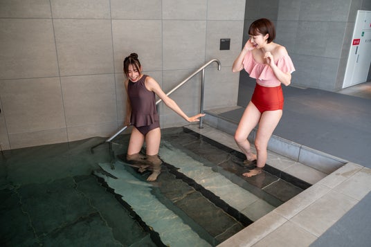 たっぷりと深い冷水により、熱く火照った全身を十分に引き締め、健康に良いとされる伝統的な温冷交代浴を楽しめます。