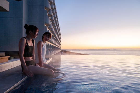 相模湾を見渡せ、水平線と一体になれる冬でも暖かな温水インフィニティプールが人気の温泉・スパ施設「THERMAL SPA S.WAVE」で自分を満たす最大24時間のホテルステイで至福の時間をお過ごしいただけるプラン。