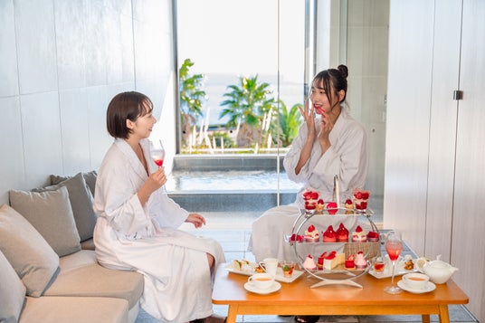 大磯プリンスホテル(所在地:〒259-0193 神奈川県中郡大磯町国府本郷546、総支配人:布川史明)では、絶景サウナでととのい、水着&ガウンのままで、いちごたっぷりのアフタヌーンティを楽しむプラン「ととのいヌン活~いちご編~」を2025年1月10日(金)~4月27日(日)の期間で販売します。当ホテルの温泉・スパ施設「THERMAL SPA S.WAVE」で4種のサウナと屋外のテラスで存分にととのった後に、冬のフルーツとして人気の「いちご」をたっぷりと使ったアフタヌーンティーをプライベートルームで楽しめるプランです。プライベートルームではオーシャンビューの貸切温泉で絶景を楽しむことができます。