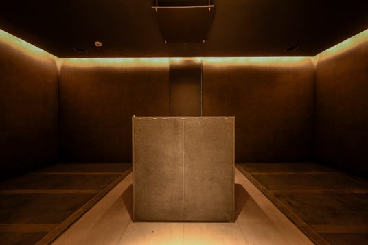 ベンチと壁面の輻射熱を身体の深部に取り込み、アロマの香りと光の波紋により、静かな瞑想を促します。