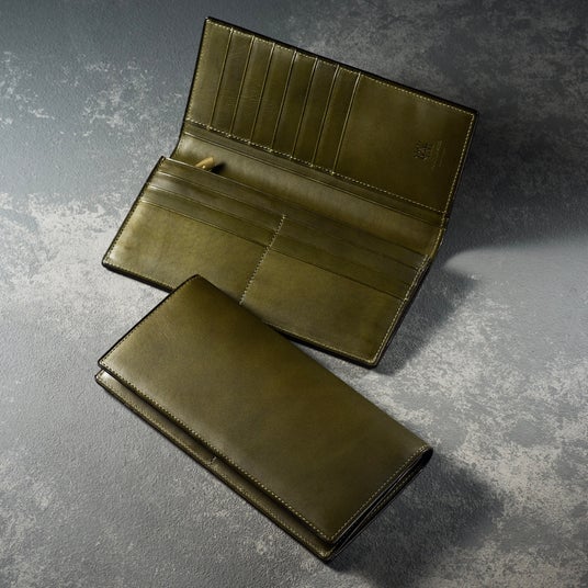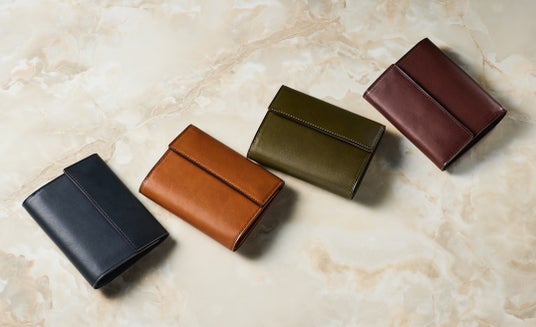 表裏にイタリア産最高級皮革のミネルバリスシオレザーを使用した財布小物シリーズ。