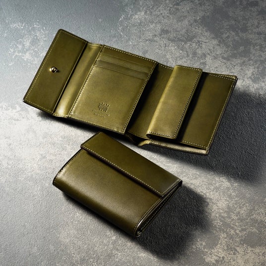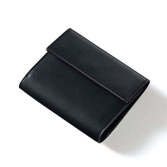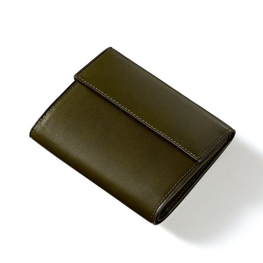 クラシカルな3つ折り財布。お札、小銭、カードをコンパクトに収納できる機能を持ち、手帳の様なホールド感がお洒落な財布です。