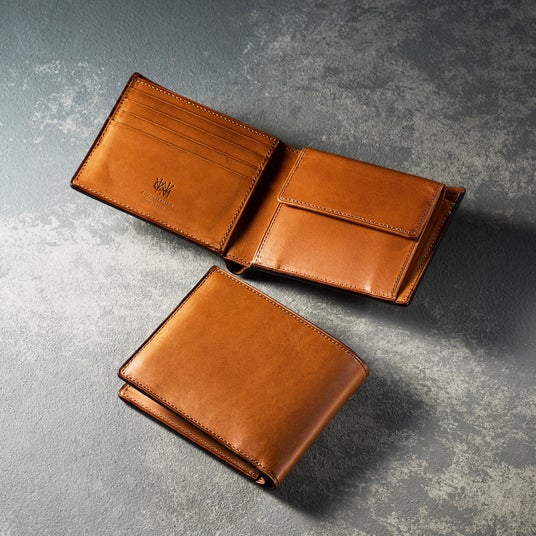 クラシカルな2つ折り財布。お札、小銭、カードをコンパクトに収納できる機能があり、機能が凝縮されており使い易いのが魅力です。