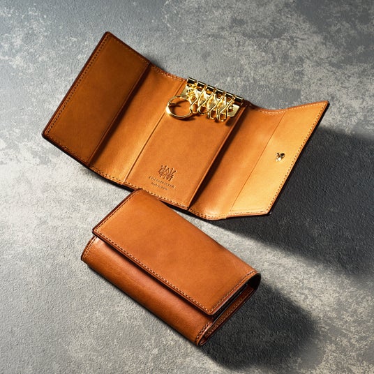 革を折りたたむクラシカルかつシンプルなキーケースです。背面にもカードポケットがあり、カード類も収納できます。