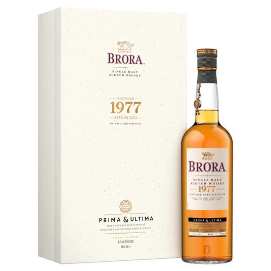 ディアジオ社が保有するウイスキーの中でも、希少で収集価値が極めて高いヴィンテージシングルモルトスコッチウイスキーのアンソロジー「PRIMA & ULTIMA」。スコットランドの名高い蒸溜所から厳選されたこのコレクションには、伝説的なブローラ蒸溜所をはじめ、貴重で味わい深いウイスキーが含まれています。「ブローラ 1977」は、45年の熟成を経て誕生した世界でわずか794本という希少なウイスキーです。