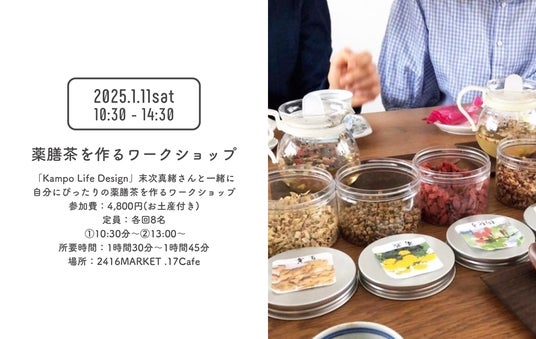「暮らしの中に漢方を。」をコンセプトに漢方のよさを楽しく、身近に感じられるように活動されているKampo Life Designの末次さんと一緒に自分にぴったりの薬膳茶を作るワークショップを開催。ちょっと身体がだるい、生理痛やイライラするなど病気じゃないけど体調が優れないと感じることはありませんか?自分自身と向き合い、薬膳のことを知り、暮らしに役立つヒントを一緒に探してみませんか。