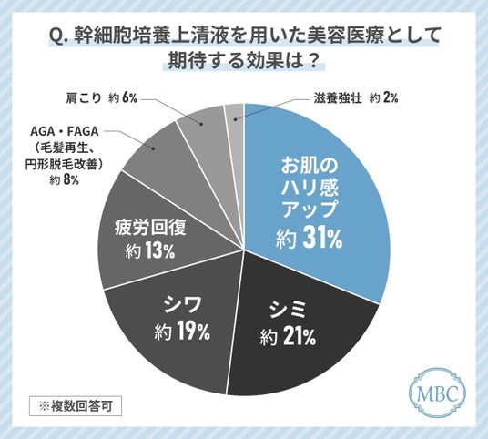 「幹細胞培養上清液を用いた美容医療として、期待する効果を下記からお選びください。※複数回答可」とアンケート調査した結果、