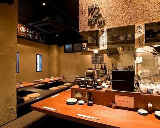 古民家の内装は1階カウンターでお一人様でも、2階でゆったりディナーでも◯