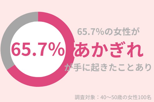調査の結果、40代女性のうち、65.7%の方が手にあかぎれが起きたことがあるとわかりました。あかぎれの主な原因は、乾燥です。手肌が乾燥し、バリア機能が低下すると、様々な肌トラブルを引き起こします。