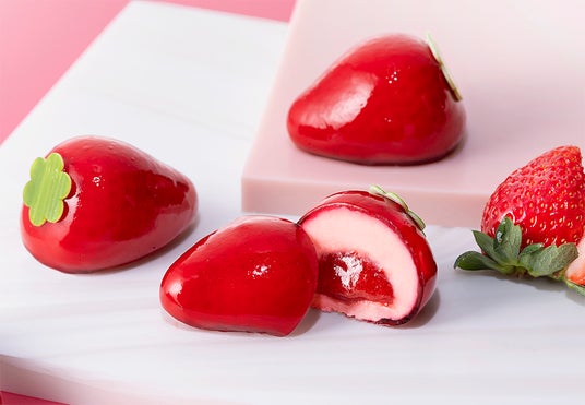 ひとくちサイズで旬を頬張る、新感覚ケーキ『ストロベリーシーズン』。なめらかな口どけにこだわった“ホワイトチョコレートベースの苺の生ショコラ”と、とろっと甘酸っぱい“あまおう苺ソース”。2つの苺のうまみを、つやつや輝く真っ赤なグラサージュで包みました。ひとくち頬張れば、やわらか食感にきっと驚いてしまうはず。お口いっぱいにあふれる苺の美味しさをお楽しみください。