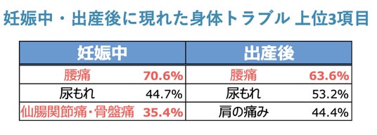 -産前・産後の身体的トラブル 最も多いのは腰痛-