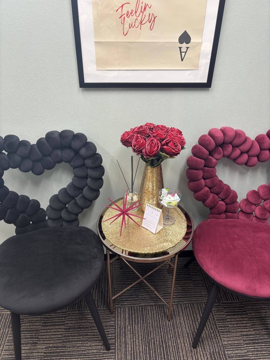 ウェイティングルームでは可愛いハート形の椅子がお出迎え