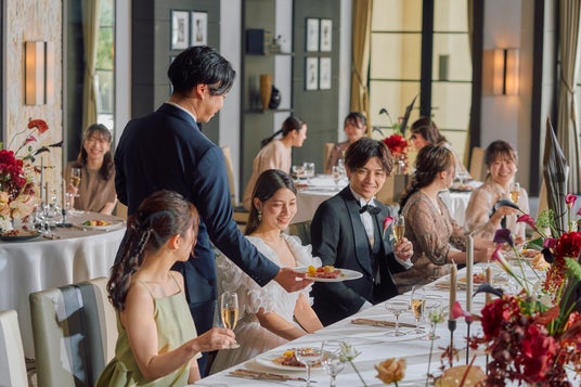 ウエディングのプロフェッショナルチームによって、ご希望に寄り添いおふたりらしい結婚式をご提案し、結婚式当日は人生最良の日にふさわしい洗練されたサービスを提供します。