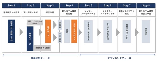 本研修はIT企画フレーム「CANVAS-SA(R)」をもとに、STEP1~8までの全8ステップを実践・体験学習していきます。