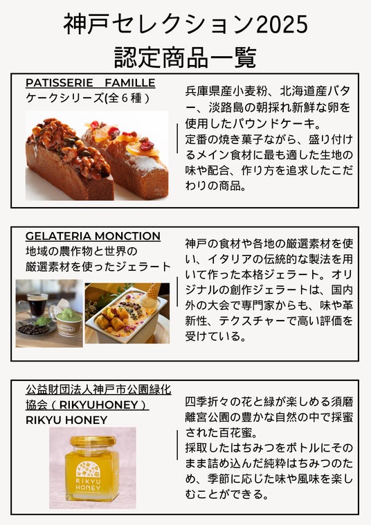 (公財)神戸市産業振興財団では「神戸セレクション2025」認定商品を決定しました。「神戸セレクション」公式ホームページURL: https://www.kobe-selection.jp/