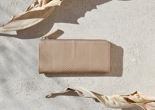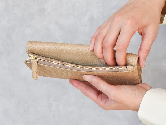 gentenのパイソンレザーは透明感のあるしっとりとした手触り。手に触れるたび、出し入れするたびに少しずつなじみ、独自の艶を放つ過程もお楽しみいただけます。