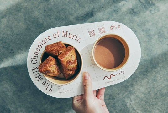 Murirオリジナルミルクチョコレートをたっぷりと使用した、会場限定の焼きたてフィナンシェ。香ばしく香るバターとヘーゼルナッツのコク深い風味のフィナンシェ生地に、ミュリルのチョコレートを加え、やさしい味わいに。天面にはガナッシュチョコレートを絞り、オリジナルチョコレートをトッピング。濃厚な風味が際立つ、香り豊かで、やわらかな食感に仕上げました。
