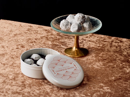 フランス・ヴァローナ社の風味豊かなチョコレートと、シャンパンを合わせたトリュフチョコレートを、オリジナルの缶に詰めて。フルーティーな香りとビターチョコレートの深く芳醇な味わいが重なり、完璧な調和に心満たされる至福の一品です。