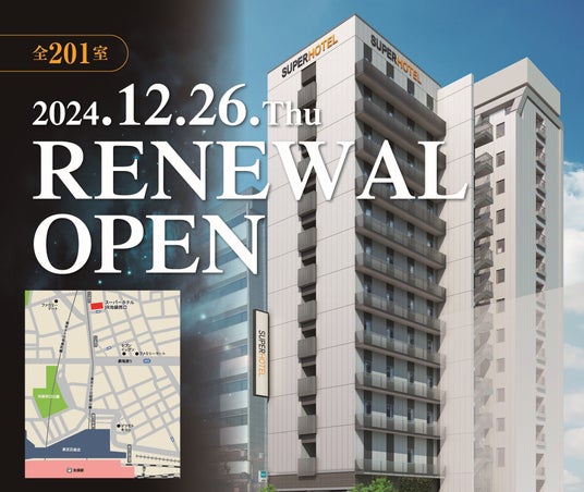 「Natural, Organic, Smart」をコンセプトに、地球にも人にも優しいホテルの運営を手掛ける株式会社スーパーホテル(代表取締役社長:山本 健策、本社:大阪府大阪市)は、2024年12月26日にスーパーホテル池袋西口天然温泉をリニューアルオープンいたします。