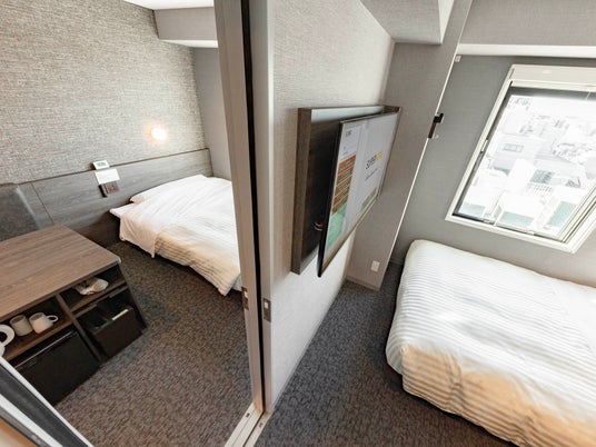 この店舗ではフロア全体が女性専用の「レディースフロア」となっており、女性用の大浴場も同じフロアにあり移動も安心です。また複数人向けのお部屋も新設しました。広めのデスクがついた2部屋が内側で繋がる「エクストラルーム・コネクティング」は最大4名までご利用いただけます。