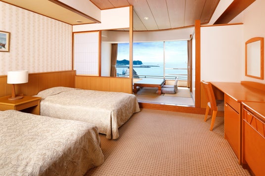 海を見ながらゆったりと寛げる和室とツインベッドが付いた洋室。和と洋の融合した広々とした空間でごゆっくりとお寛ぎください。