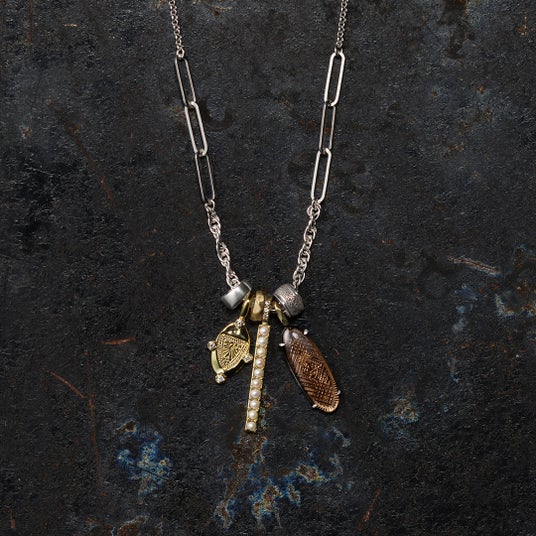 ネックレスチャームは取り外しができるので、ネックレスチェーンだけで着けたり、他のチャームと重ねてアレンジも楽しめる。