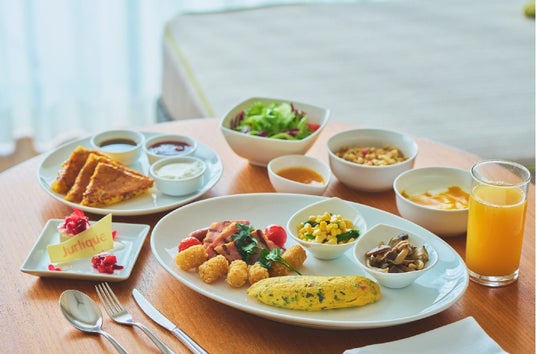 地球と融合する美のリズムをテーマに、沖縄の自然と美しさからインスピレーションを受けた3種類の朝食をこのプランオリジナルとしてご用意。ホテルシグニチャーであるフレンチトーストをはじめ、身体にやさしい中華粥など、地元の新鮮な食材を中心とした3種類の中からご選択いただけ、ルームサービスでお届けいたします。朝の貴重なお時間をゆっくりとお部屋でお楽しみいただける贅沢時間を選択いただける上、ご希望によりレストラン利用も可能です。1日の始まりをご自身のペースやご予定に合わせてお選びください。