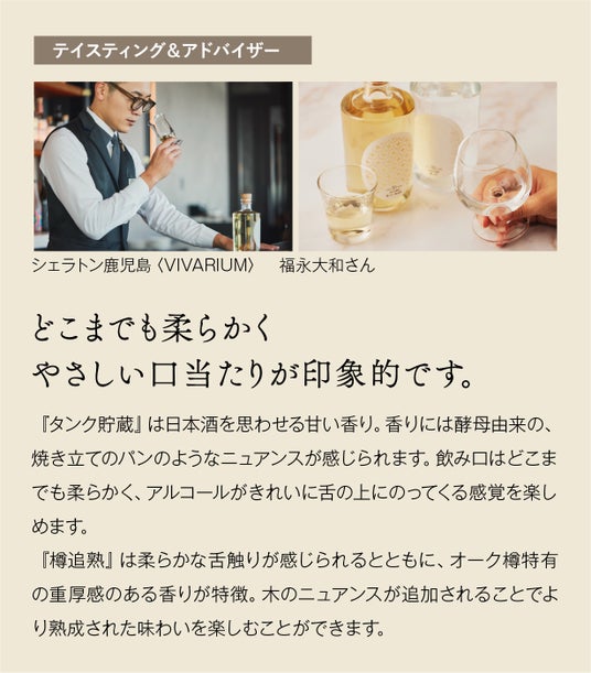 米由来の柔らかな余韻と、とろける味わいの「タンク貯蔵」
