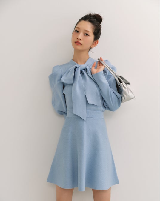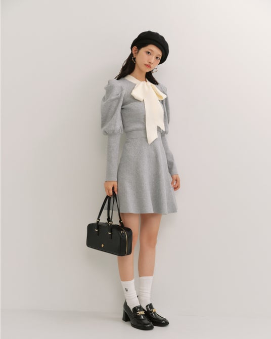 過去好評だったボウタイ付きのニットセットアップおよびニットワンピースのデザインをアップデートしたスペシャルなアイテムです。