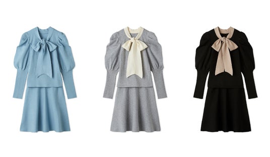 人気のデザインをアップデートしたボウタイニットセットアップとドッキングニットワンピースの2種を数量限定で発売