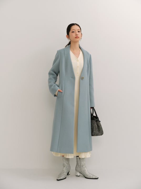 シフォンのフリルが顔周りを華やかに演出しつつ、気になる肩幅もカバーしてくれます。アウターとも合わせやすく春先まで使える【IVR】、やわらかく女性らしさのある【MOC】、スッキリとスタイルアップの叶う【BLK】の3色をご用意しました。