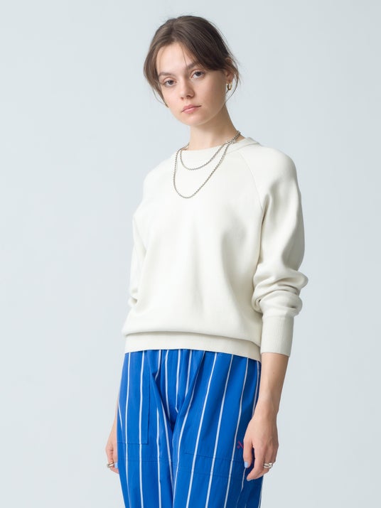 カリフォルニアラグジュリーを表現するカジュアルでコンフォタブルでタイムレスなデイリーウエアを展開しているRon Herman California。どんなボトムスとも似合う程よいジャストな丈感のラグランスリーブのプルオーバーを、光沢感のあるスヴィンコットンを使用して上品に仕上げました。モードなスカートやカジュアルなデニムまで幅広くスタイリングできる秀逸な一枚です。