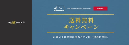 myNB会員様限定で、期間中にニューバランス公式オンラインストアでご購入いただいた方は、お買い上げ金額に関わらず全国一律送料無料となります。また、期間中は、myNB会員様はポイントが2倍となります。