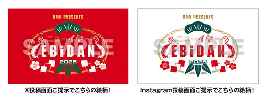 「#ニューイヤーEBiDAN」のハッシュタグをつけて、XもしくはInstagramにて投稿し、投稿画面をHMV店頭レジでご提示いただくと、「ニューイヤーEBiDAN ロゴステッカー」を先着でプレゼント!