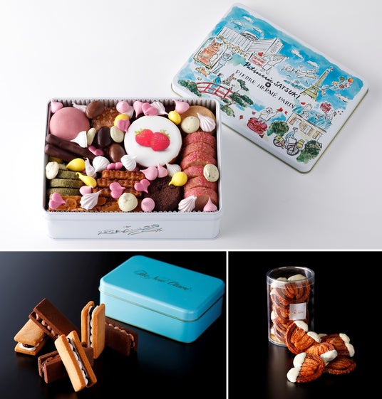 5種のチョコレートに、アールグレイクッキーやサブレバニラをはじめ、個性あるフレーバーのクッキーに、カラフルなメレンゲが鮮やかな青缶に詰められた『SATSUKIチョコレート&クッキー』。新年の挨拶にふさわしい「迎春」、2025年の干支「巳」が描かれたクッキーを盛り込んだ、「お年賀」バージョンが新たに登場します。一年の始まりに、ご家族・ご親戚や大切な人へ、パティシエが丹精込めて作り上げた極上スイーツを手土産に、ご挨拶に行くのはいかがでしょう。