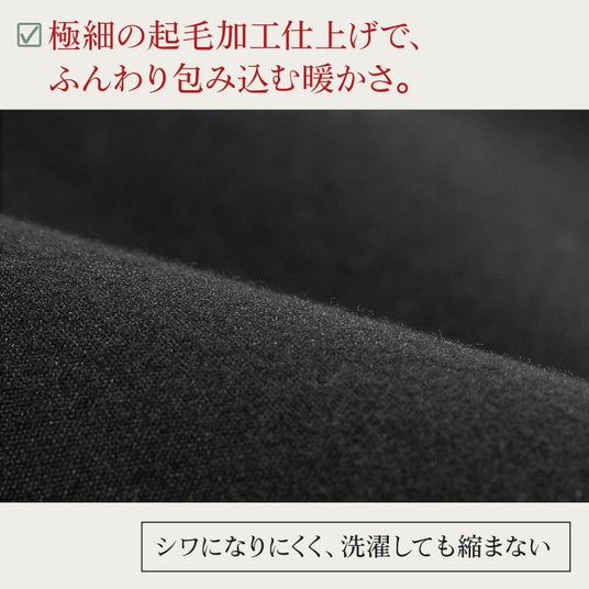 極細起毛加工のためチクチクせず、乾燥肌にも優しいシルキータッチ。