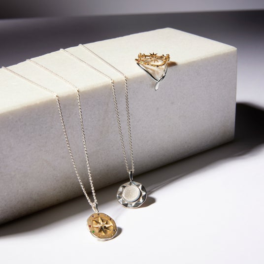 【Fortune Compass】リバーシブルネックレス ¥55,000(税込)/ 3本セットリング ¥48,400(税込)※スペシャルBOX入り(数量限定)