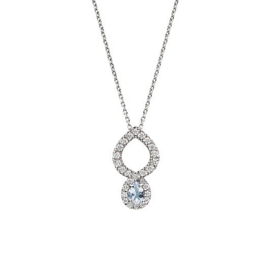 アクアマリン ネックレス淡い水色が美しいデルフィニウムをモチーフにしたネックレス。丸みを帯びた花びらを思わせるペアシェイプカットのアクアマリンが瑞々しく輝きます。