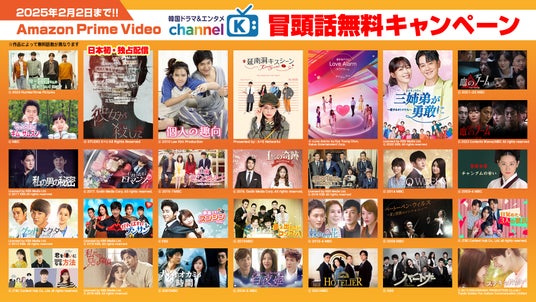 チャンネルKでは本日12月26日(木)~2025年2月2日(日)までの期間限定で、チャンネルKで配信中の該当する韓国コンテンツ30作品がPrime Videoにて冒頭話見放題となる「冒頭話無料キャンペーン」を開催いたします。