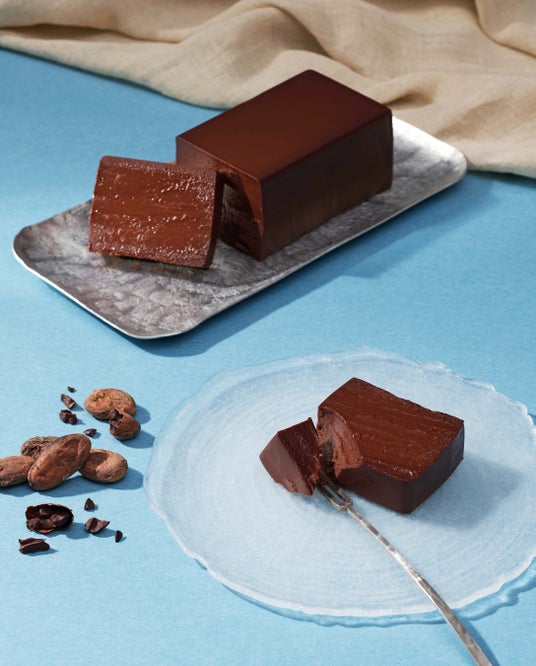 カカオ本来の風味をとじ込めてしっとり焼き上げたテリーヌショコラ。“サオパルメ75%”を使用した華やかなカカオの香りとなめらかな口どけの、シンプルで贅沢な味わいです。