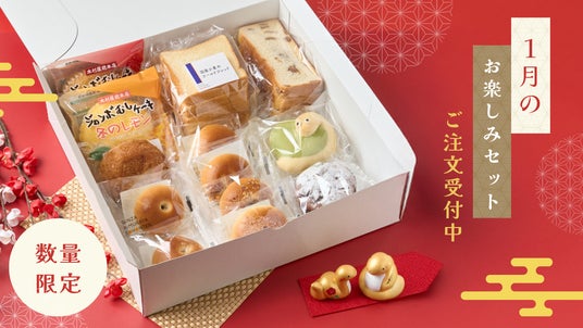 お正月にぴったりなパンをお届け。「1月のお楽しみセット」と「干支パン(巳)5入」が登場!「1月のお楽しみセット」は送料込みのお得な詰め合わせです。かわいいヘビの形をした「干支パン(巳)」にはカスタークリームがたっぷり。オンラインで手軽に新年を彩るおいしいパンをお楽しみいただけます。2025年1月6日からのお届けです。