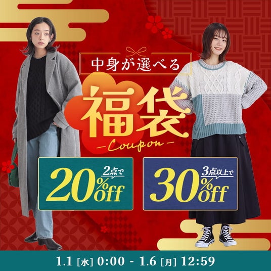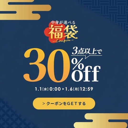 今年は、対象アイテムから自由に選べる「福袋クーポン」が登場。あなただけのオリジナル福袋を作ってみませんか?