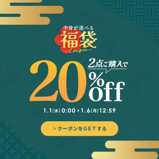 ※福袋クーポンは「併用不可」のため、対象アイテム以外も合わせて購入される場合は他クーポンを同時にご利用いただけません。他クーポンをご利用の場合は別々にご注文くださいませ。