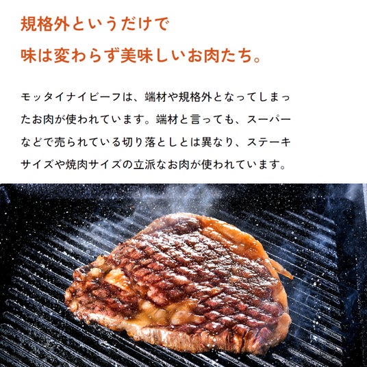 我々は牛肉を一頭まるごと仕入れて加工しておりますが、卸用の商品を製造するにあたり、形を整えるために端材が出てしまったり、規格外となってフードロスとなってしまう“もったいない”牛肉たちが多く存在しています。そんな牛肉たちを「モッタイナイビーフ」と名付け、サステナブルな食材としてより多くの人に楽しんでいただけるよう、一般のお客様向けに精肉商品として販売を始めました。