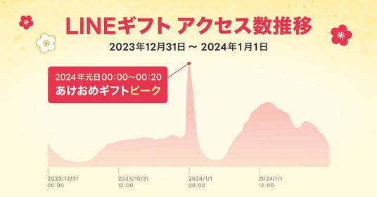 特に1月1日(元日)の利用件数は、クリスマスやバレンタイン、母の日、父の日、ホワイトデーのシーズナルイベントに次いで高くなっています。2024年の元日のアクセス数は前年比230%に達し※2、その中でも年が明けた0時0分~0時20分にアクセスが集中しました。また、LINEスタンプの送信数も元日が一年でもっとも多く※3、新年のコミュニケーションとしてLINEアプリで『あけおめスタンプ』や『あけおめギフト』が気軽に楽しまれています。
