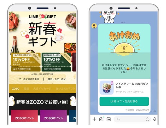 LINEヤフー株式会社が提供する、「LINE」を通じて友だちにさまざまなプレゼントを贈ることができるサービス「LINEギフト」は、公開中の「新春ギフト特集」にて、年末年始に利用できる10%OFFの「あけおめクーポン」など、3種類のクーポンの配布を開始しました。また、今年のクリスマスに贈られた人気ギフトTOP10を公開します。