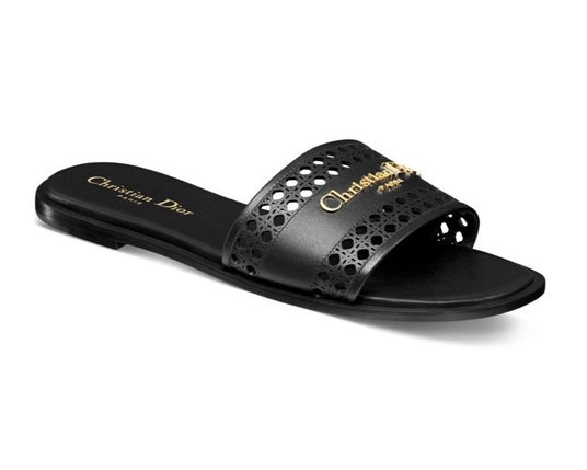 マリア・グラツィア・キウリによる2025年クルーズ コレクションの新作「D-レーン」ミュールは、時代に左右されないアイコニックなスタイルを表現しています。アッパーはブラックのオープンワーク「マイクロカナージュ」カーフスキン、そしてゴールドトーンメタルの“Christian Dior Paris”シグネチャーで飾られひと目でそれとわかるアクセントが添えられています。技術の美を讃えるバレエのように、メゾンのアイコンが、精密に調整されたインセットとともにフロントバンドにレーザー刻印され、熟練の職人が手作業で仕上げのサインをほどこす中、上質なレザーが靴へと変化していく様子を動画でご覧ください。